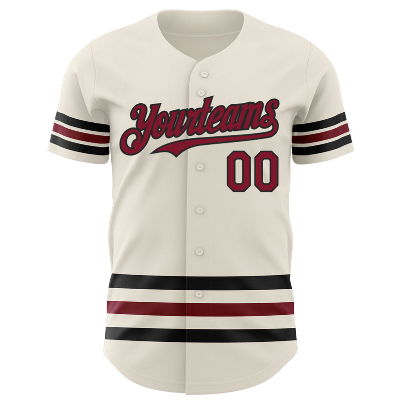 Custom Cream Crimson-Black Line Authentic Baseball Jersey