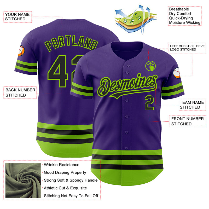 Custom Purple Black-Neon Green Line Authentic Baseball Jersey