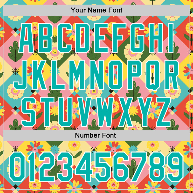 Custom Medium Pink Aqua-White 3D Ambartive Checkered Flower Pattern Authentic Baseball Jersey
