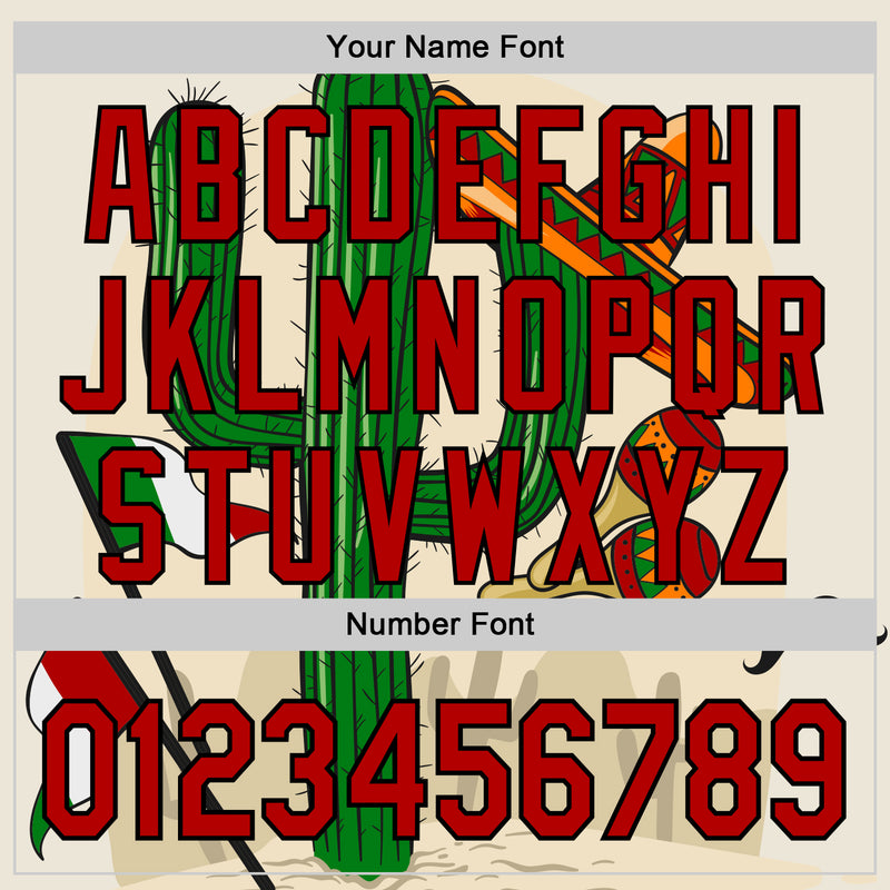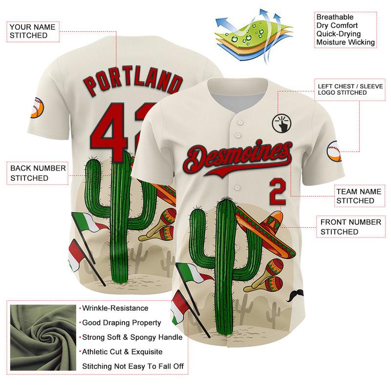 Custom Cream Red-Black 3D Mexican Festival Cactus Sombrero And Flag Cinco de Mayo Authentic Baseball Jersey