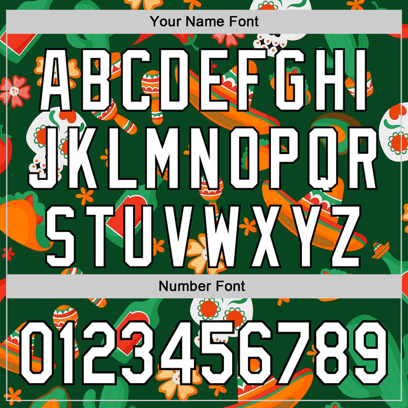 Custom Green White-Black 3D Mexican Festival Sombrero And Skull Cinco de Mayo Authentic Baseball Jersey