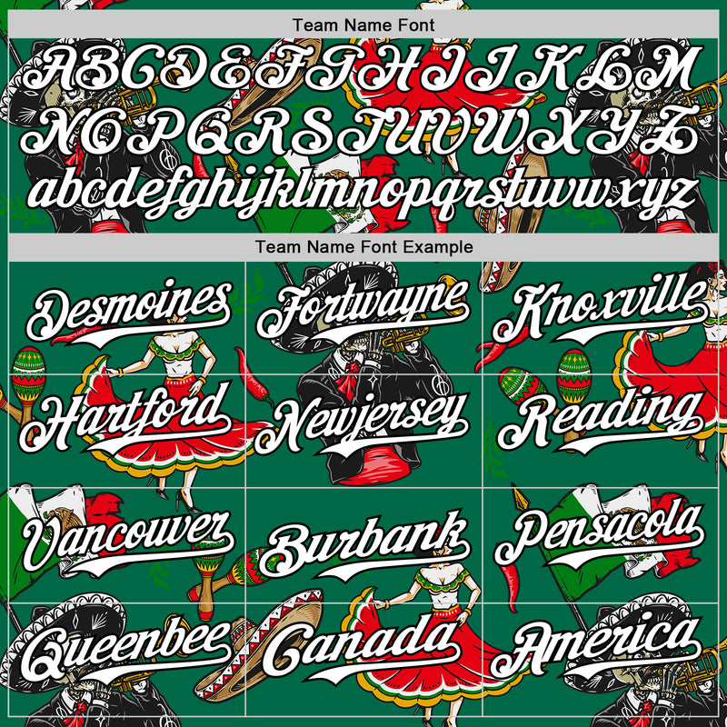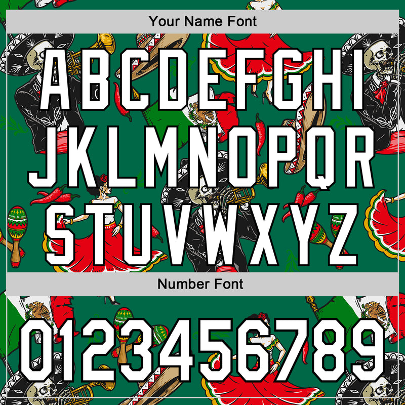 Custom Kelly Green White-Black 3D Mexican Festival Skull Cinco de Mayo Authentic Baseball Jersey