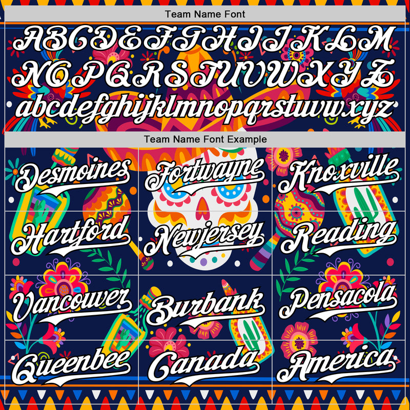 Custom Navy White-Black 3D Mexican Festival Flower Skull With Sombrero Cinco de Mayo Authentic Baseball Jersey