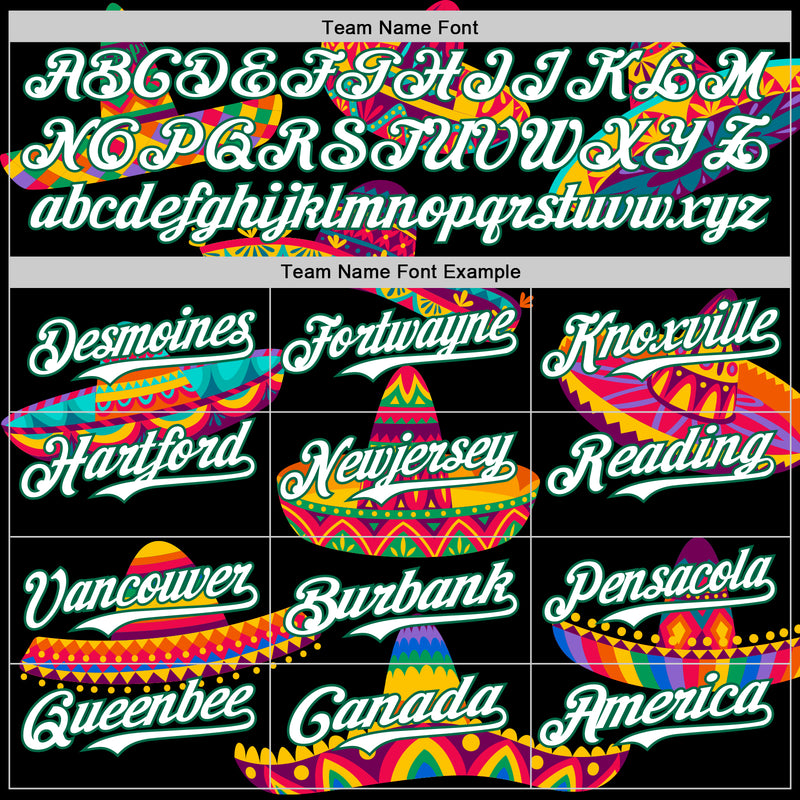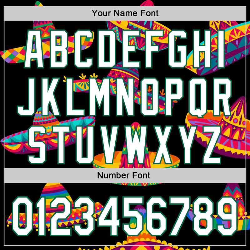 Custom Black White-Kelly Green 3D Mexican Festival Sombrero Cinco de Mayo Authentic Baseball Jersey