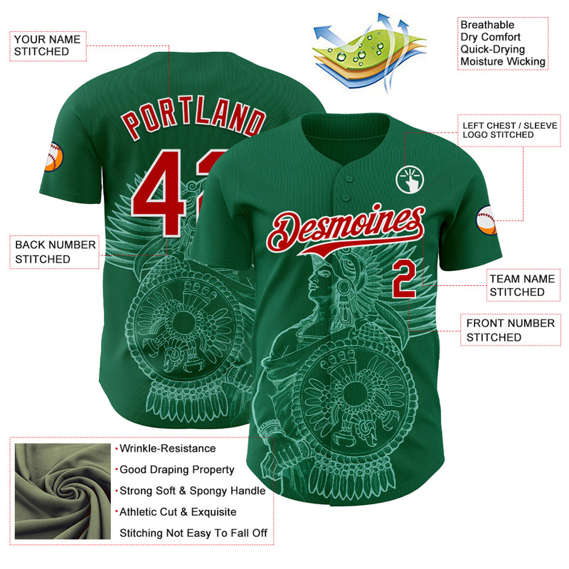 Custom Kelly Green Red-White 3D Mexico Mexican Flag Authentic Baseball Jersey