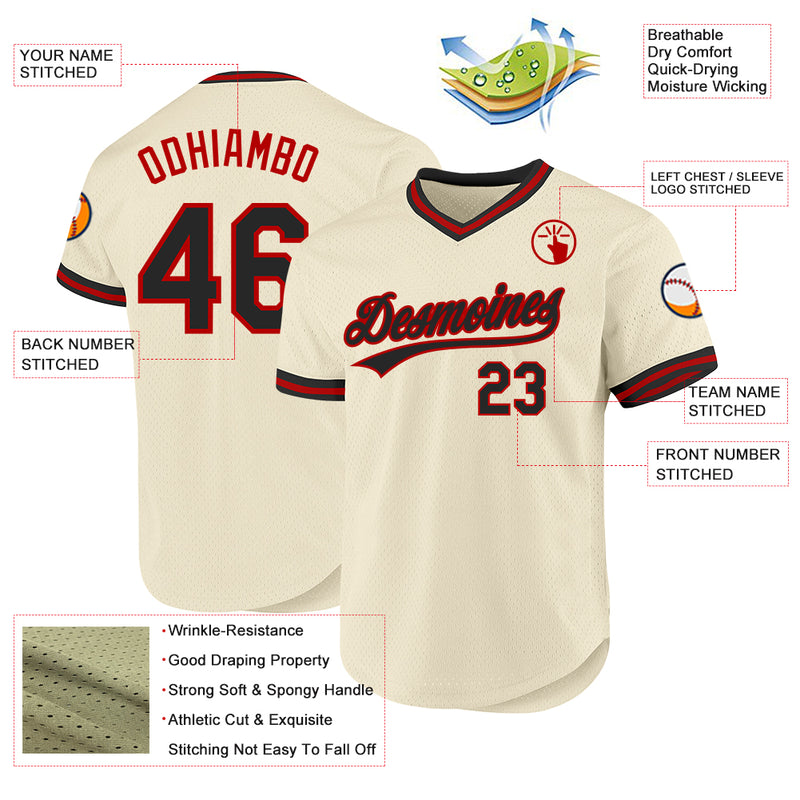 Custom Cream Black-Red Authentic Throwback Baseball Jersey