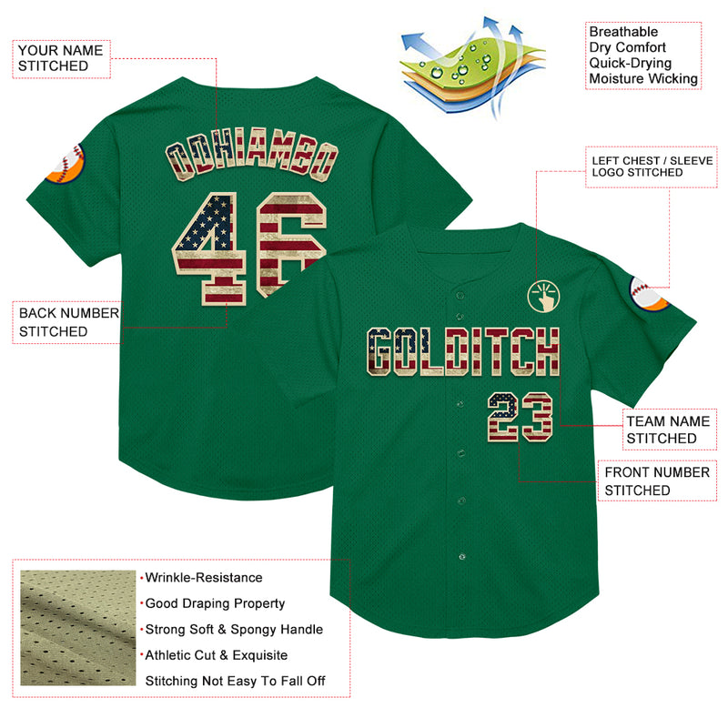 Custom Kelly Green Vintage USA Flag-Cream Mesh Authentic Throwback Baseball Jersey