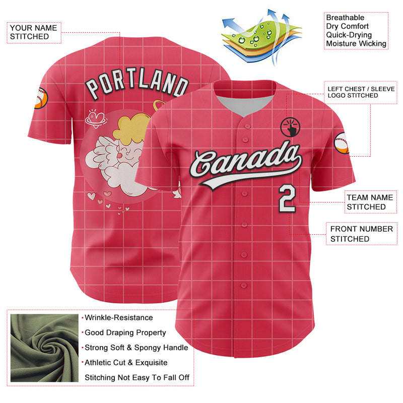 Custom Neon Pink White-Black 3D Love Heart Valentine's Day Authentic Baseball Jersey