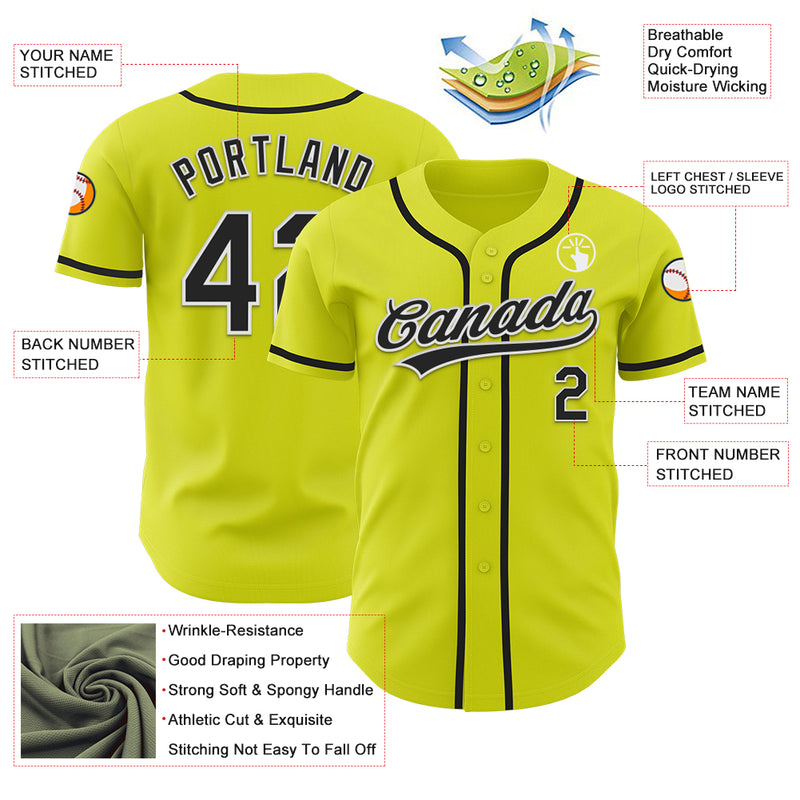 Custom Neon Yellow Black-White Authentic Baseball Jersey