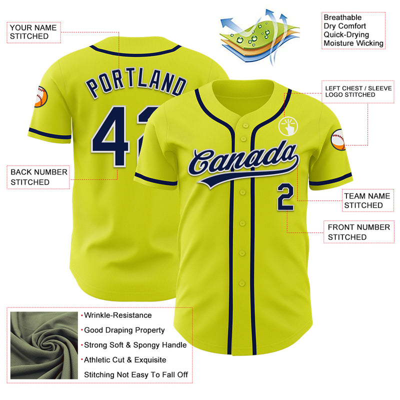 Custom Neon Yellow Navy-White Authentic Baseball Jersey