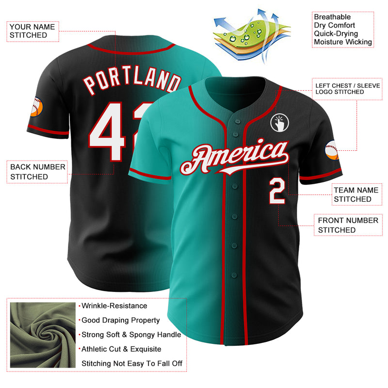 Custom Black White Aqua-Red Authentic Gradient Fashion Baseball Jersey