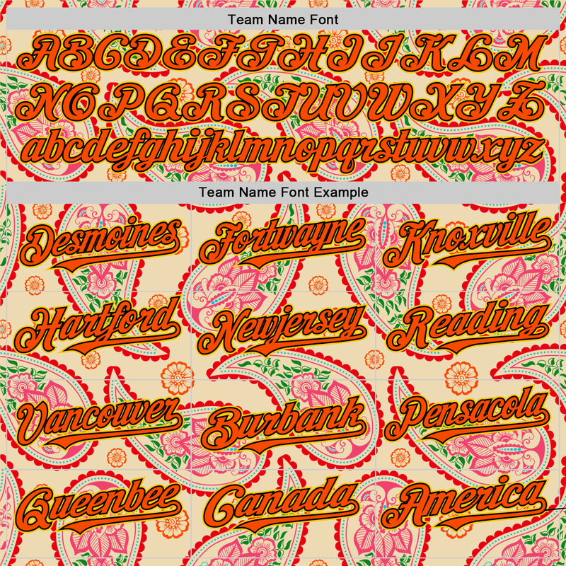 Custom Cream Orange Black-Yellow 3D Pattern Design Rave Party Paisley Bandana Authentic Baseball Jersey