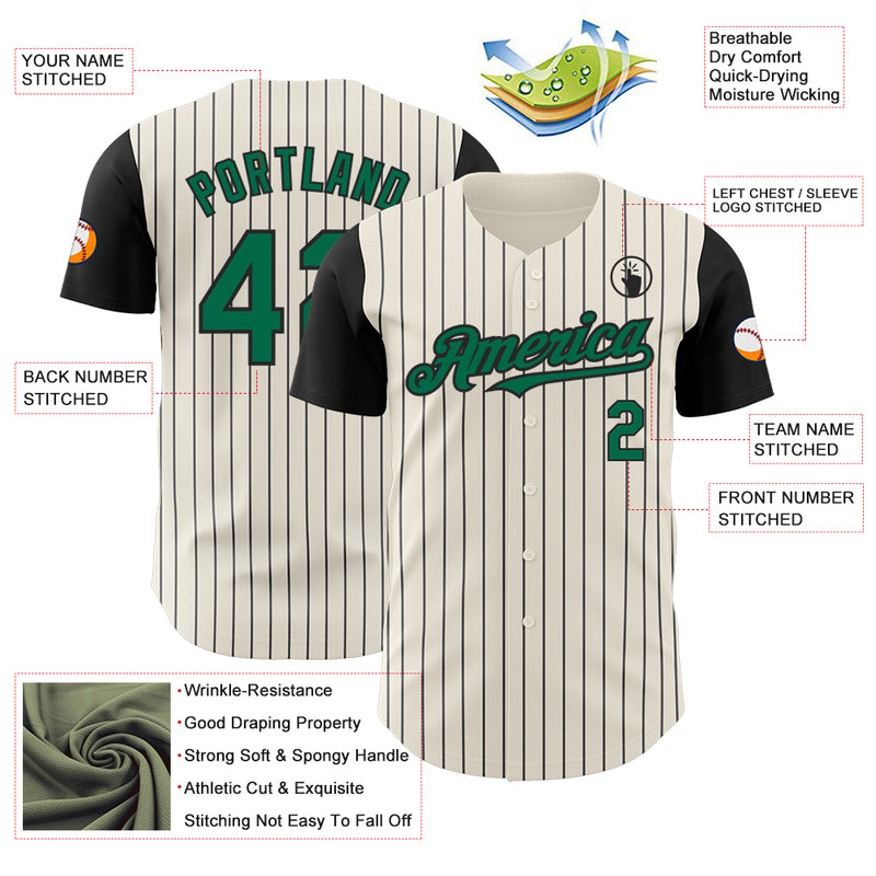 Custom Cream Black Pinstripe Kelly Green Authentic Two Tone Baseball Jersey