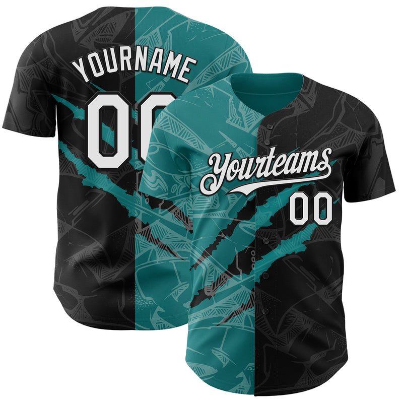 Custom Graffiti Pattern White Black-Teal 3D Scratch Authentic Baseball Jersey