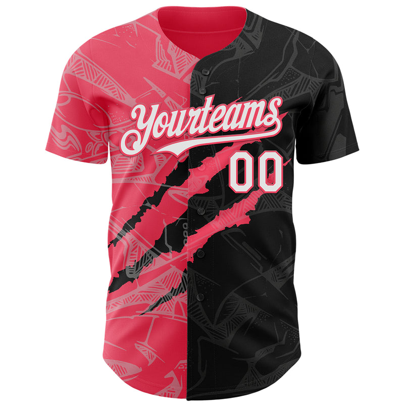 Custom Graffiti Pattern White Black-Neon Pink 3D Scratch Authentic Baseball Jersey