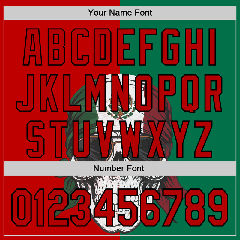 Custom Green Red-Black 3D Mexican Flag Skull Authentic Baseball Jersey