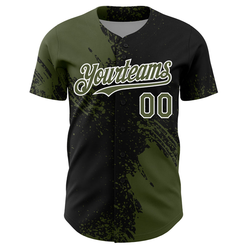Custom Olive Black-White 3D Pattern Design Abstract Brush Stroke Authentic Baseball Jersey