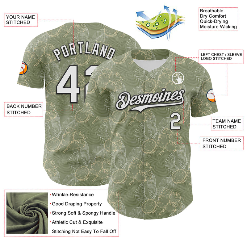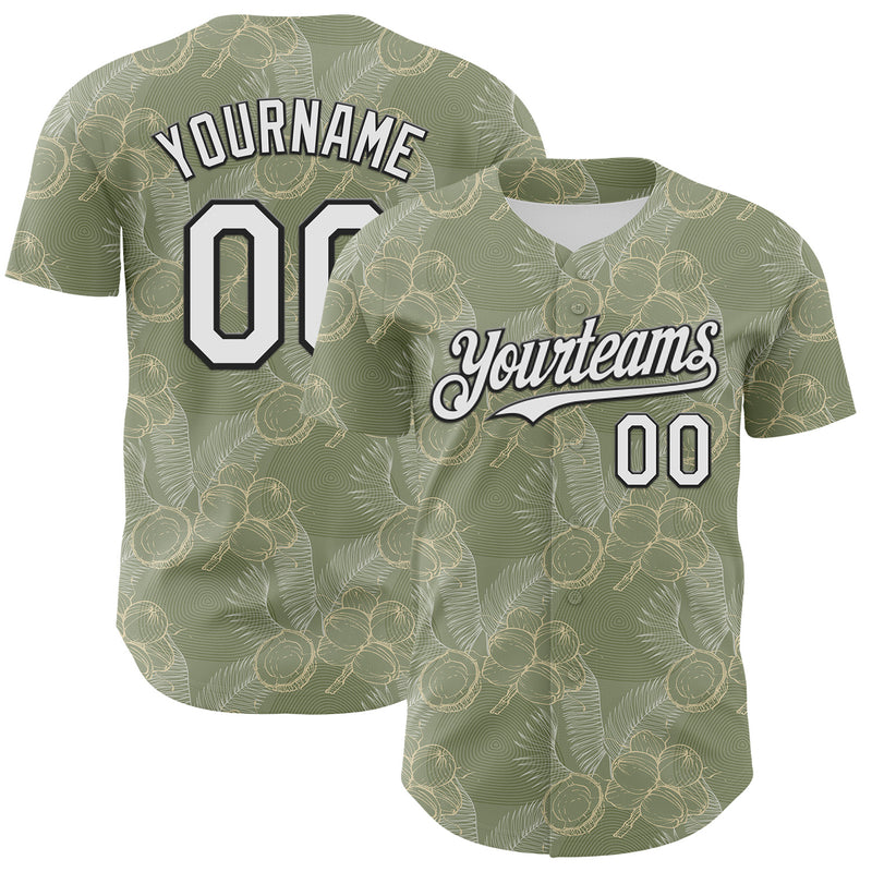 Custom Olive White-Black 3D Hawaii Tropical Coconut Tree Authentic Baseball Jersey