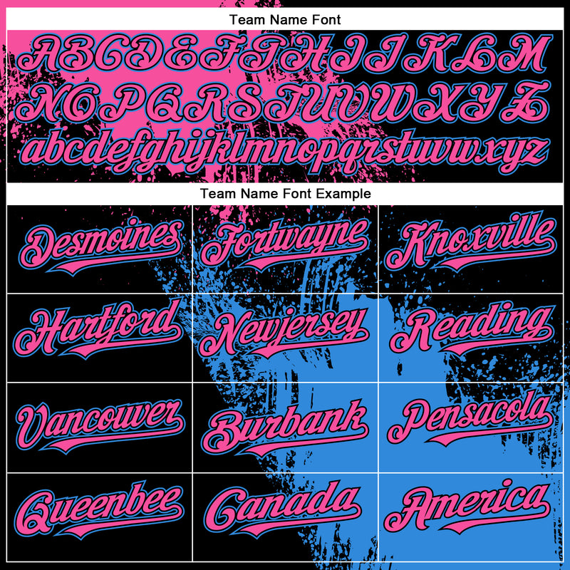 Custom Pink Electric Blue-Black 3D Pattern Design Abstract Brush Stroke Authentic Baseball Jersey