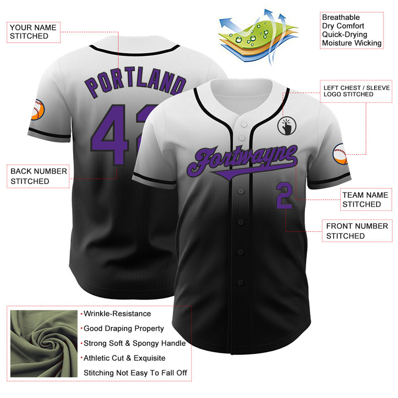 Custom White Purple-Black Authentic Fade Fashion Baseball Jersey
