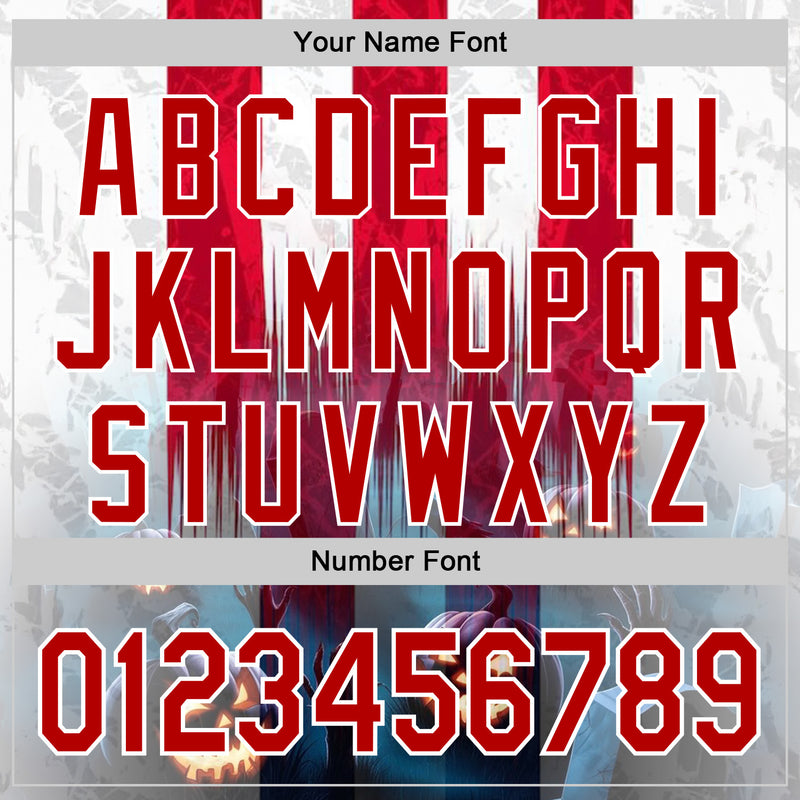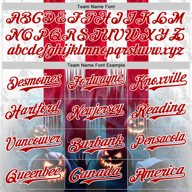 Custom Red Blue-White 3D Halloween Spooky Pumpkin Stripe Authentic Baseball Jersey