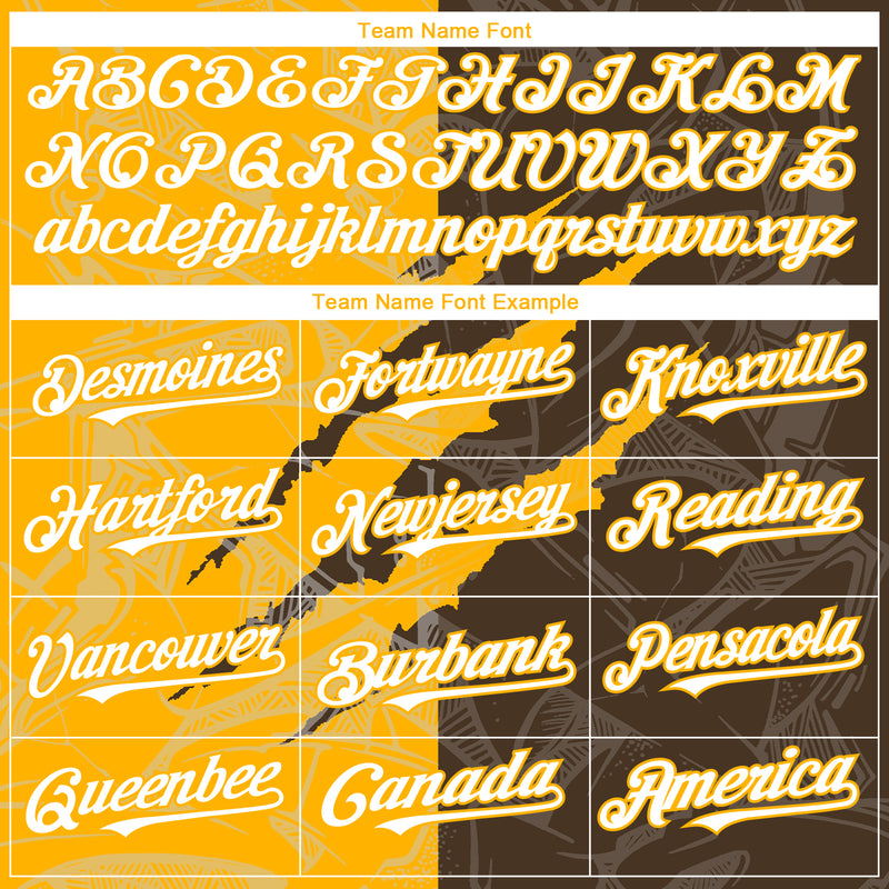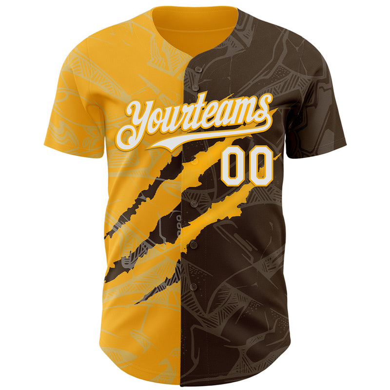 Custom Graffiti Pattern White Brown-Gold 3D Scratch Authentic Baseball Jersey