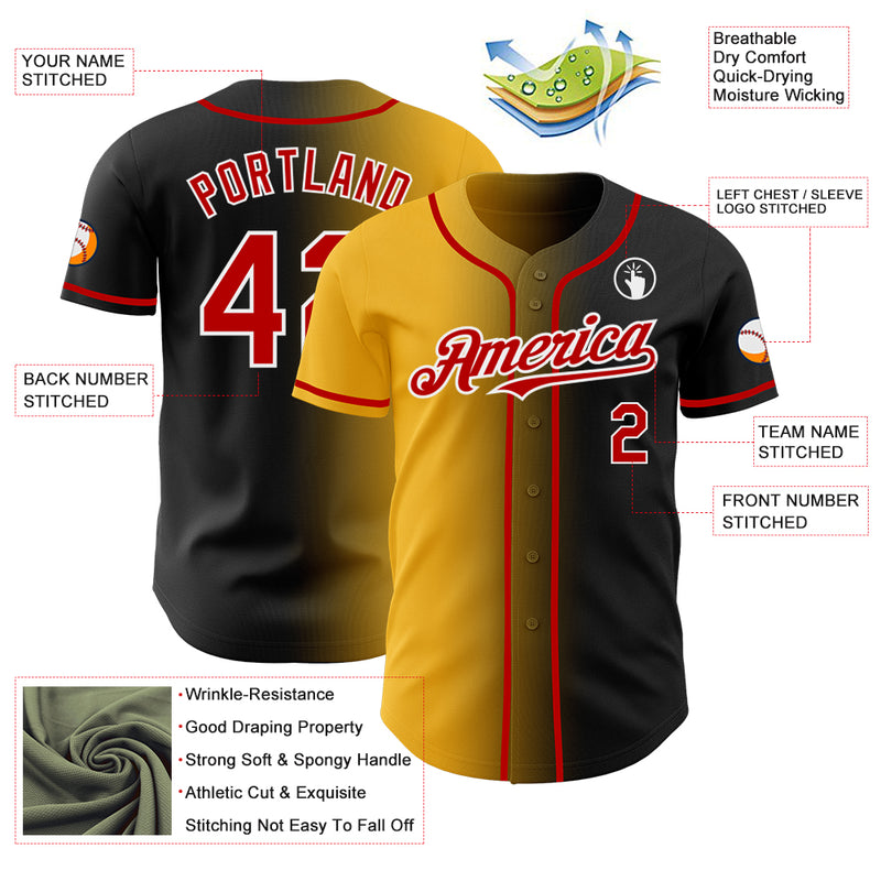 Custom Black Red Gold-White Authentic Gradient Fashion Baseball Jersey