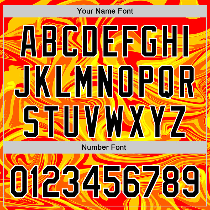 Custom Orange Black Gold-White 3D Pattern Design Rave Party Marble Lava Authentic Baseball Jersey