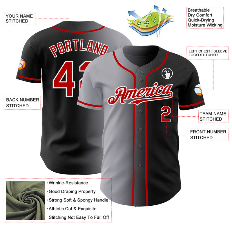 Custom Black Red Gray-White Authentic Gradient Fashion Baseball Jersey