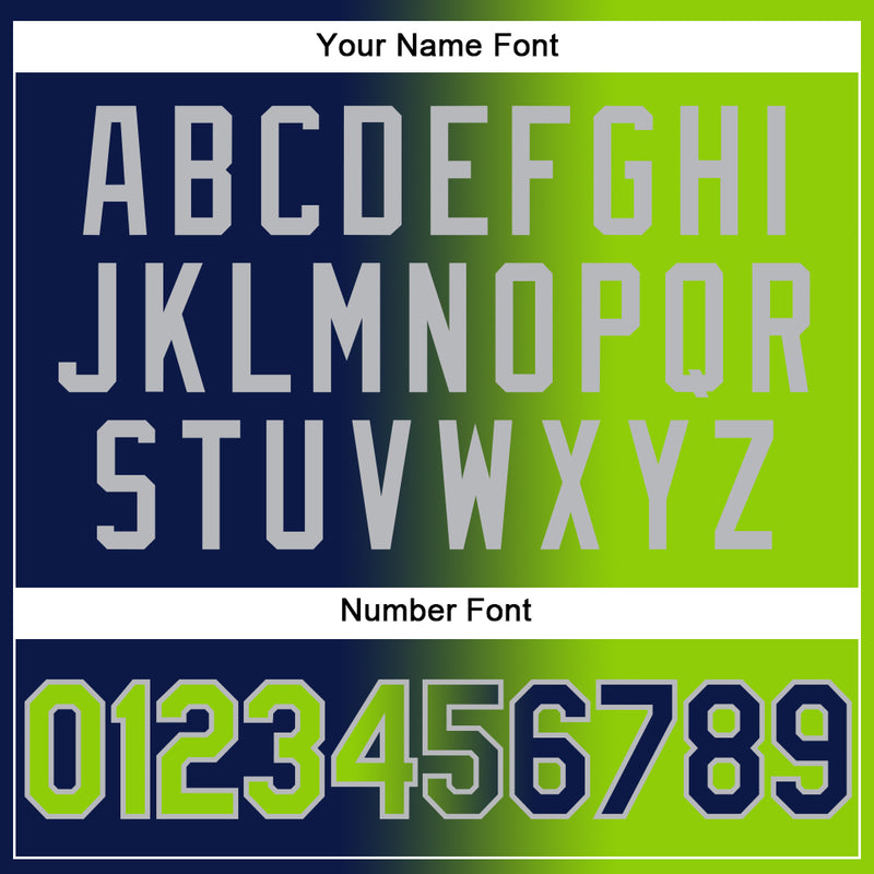 Custom Navy Neon Green-Gray Authentic Gradient Fashion Baseball Jersey