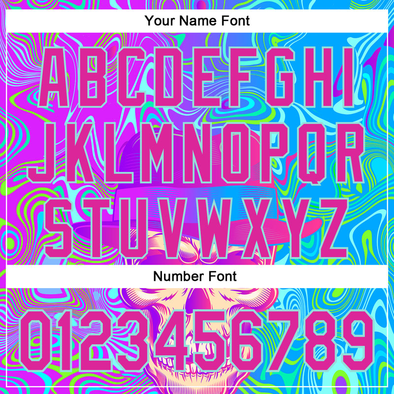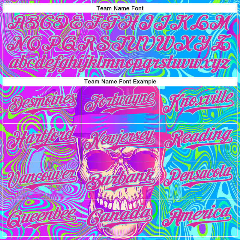 Custom Blue Deep Pink-Ice Blue 3D Pattern Design Trippy Magic Mushrooms Skull Authentic Baseball Jersey