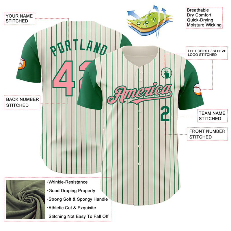 Custom Cream Kelly Green Pinstripe Medium Pink Authentic Two Tone Baseball Jersey