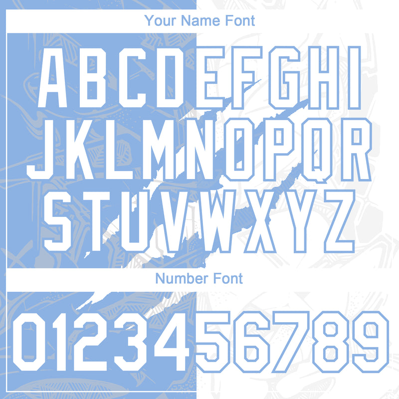 Custom Graffiti Pattern White-Light Blue 3D Scratch Authentic Baseball Jersey