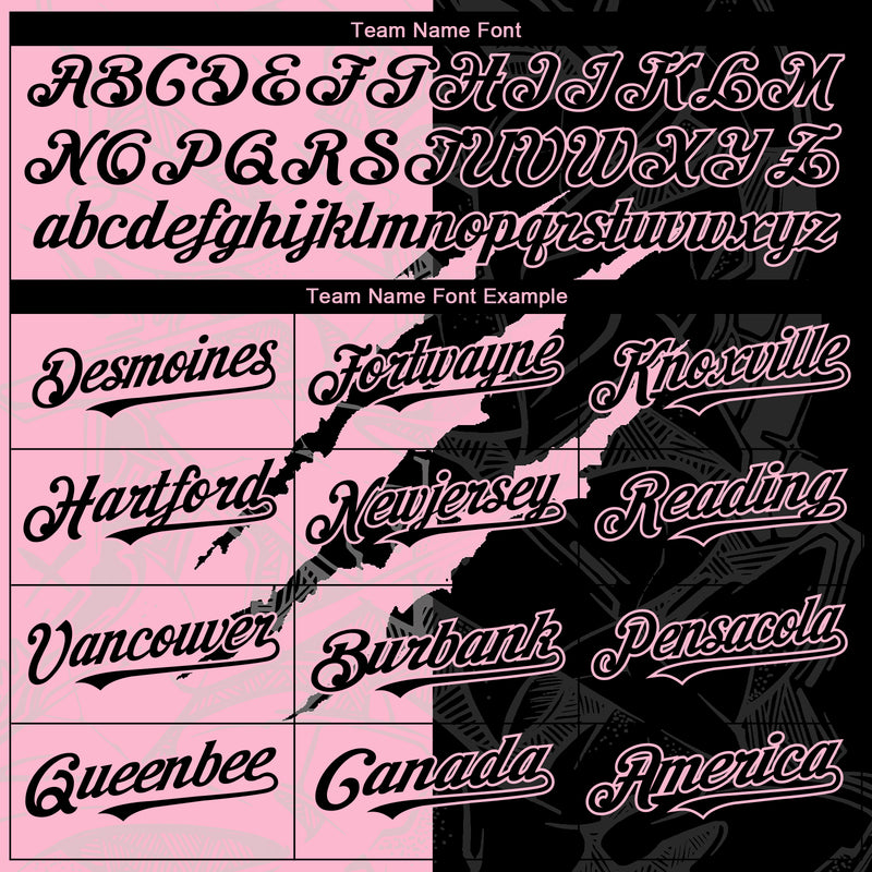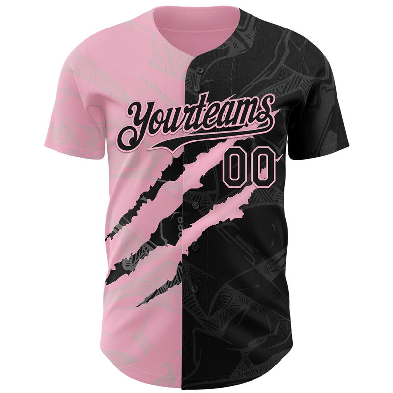 Custom Graffiti Pattern Black-Light Pink 3D Scratch Authentic Baseball Jersey