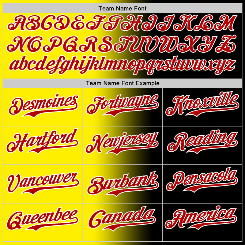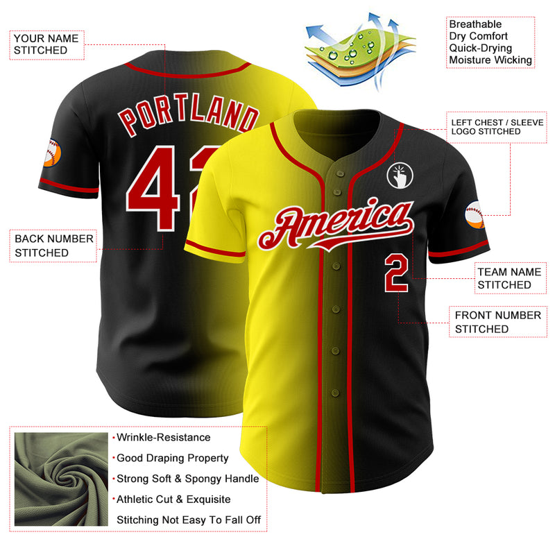 Custom Black Red Light Yellow-White Authentic Gradient Fashion Baseball Jersey