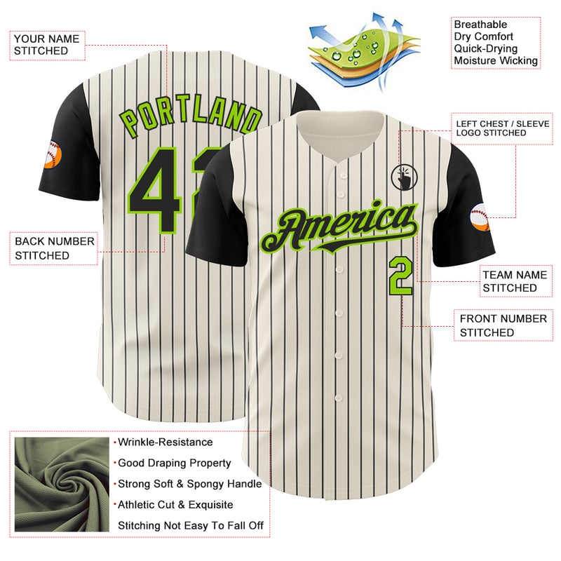 Custom Cream Black Pinstripe Neon Green Authentic Two Tone Baseball Jersey