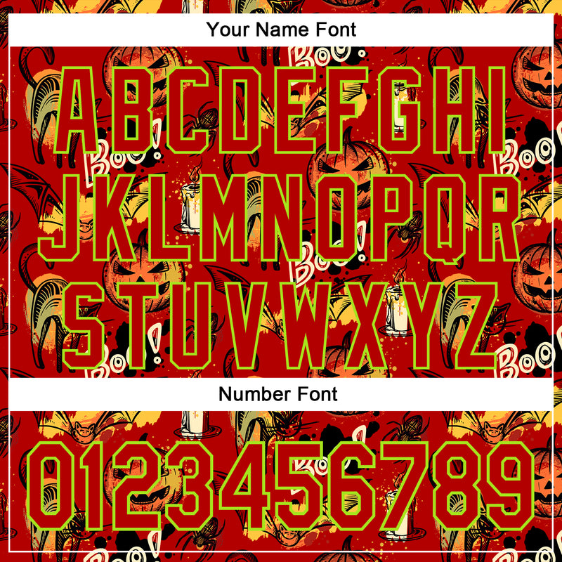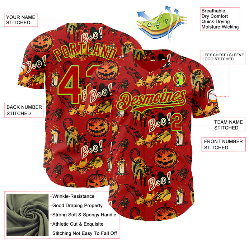 Custom Red Neon Green 3D Halloween Pumpkin Doodle Party Costume Ideas Authentic Baseball Jersey