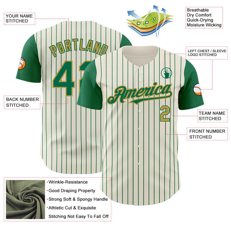 Custom Cream Kelly Green Pinstripe Old Gold Authentic Two Tone Baseball Jersey