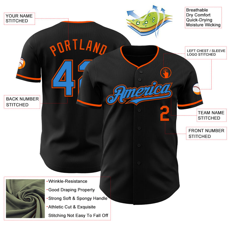 Custom Black Electric Blue-Orange Authentic Baseball Jersey