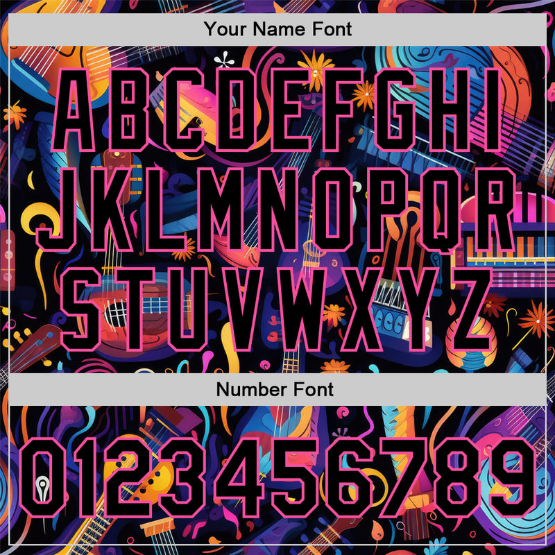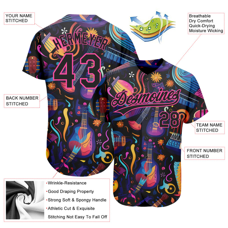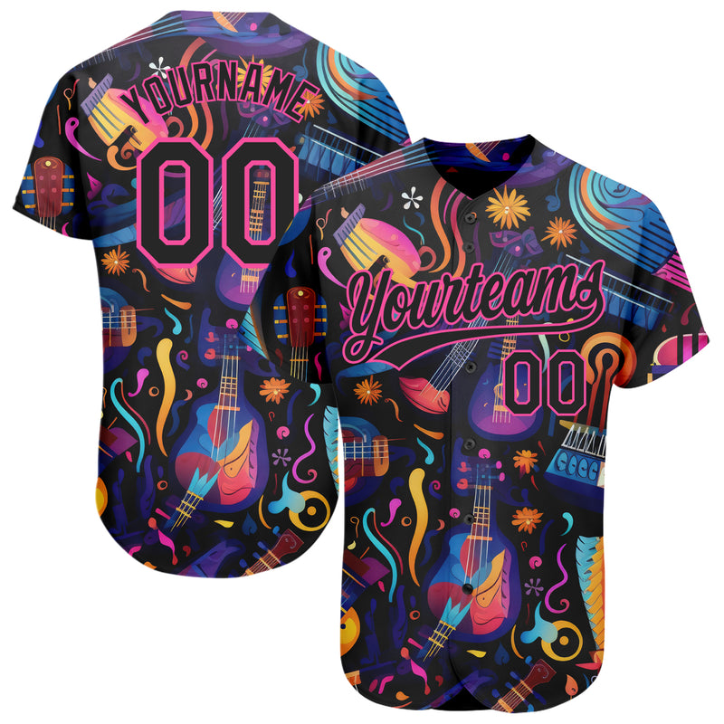 Custom Black Pink 3D Pattern Design Music Festival Musical Instruments Authentic Baseball Jersey