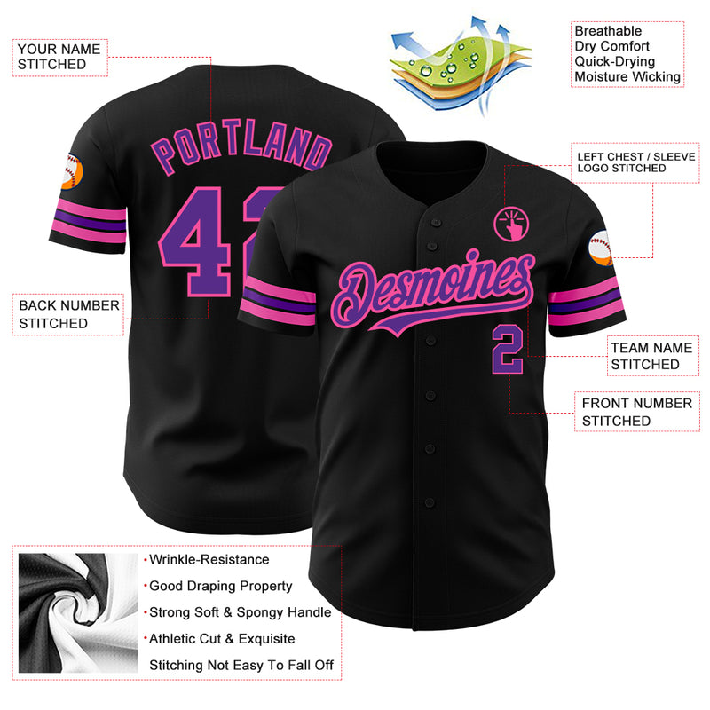 Custom Black Purple-Pink Authentic Baseball Jersey