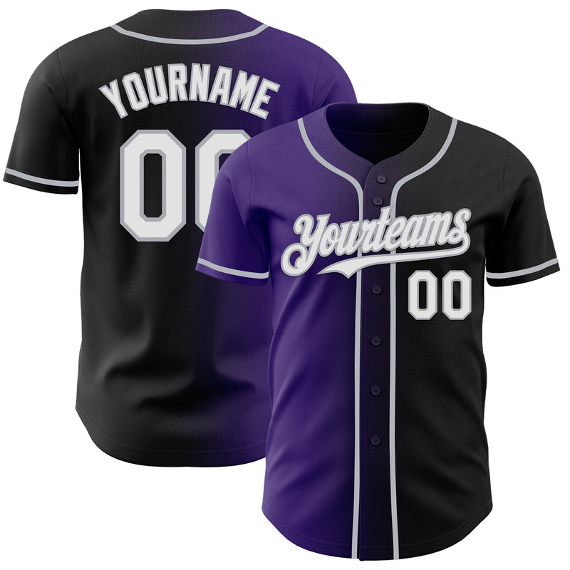 Custom Black White Purple-Gray Authentic Gradient Fashion Baseball Jersey