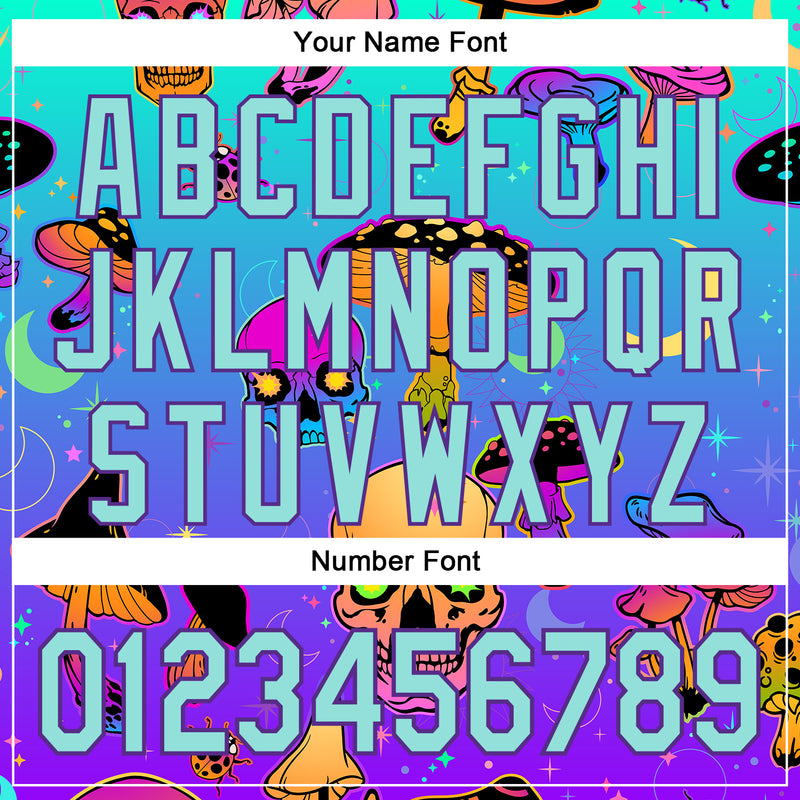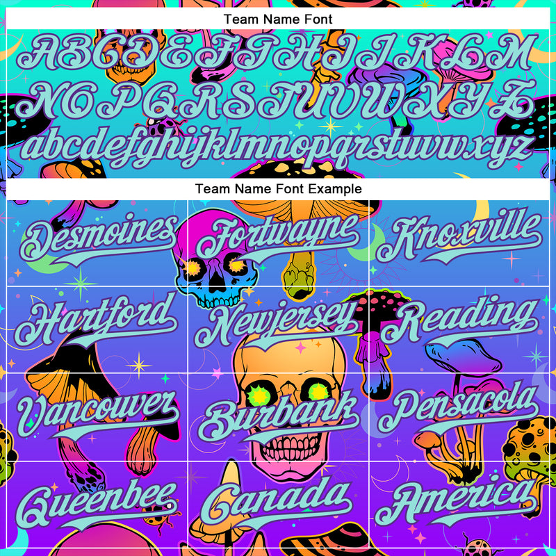 Custom Blue Ice Blue-Purple 3D Pattern Design Trippy Magic Mushrooms Skull Authentic Baseball Jersey