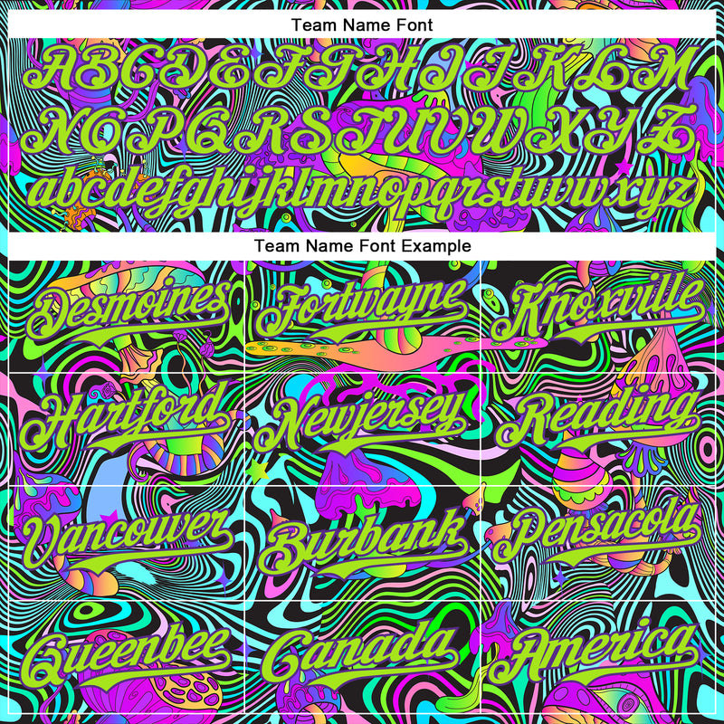 Custom Purple Neon Green 3D Pattern Design Trippy Groovy Magic Mushrooms Authentic Baseball Jersey