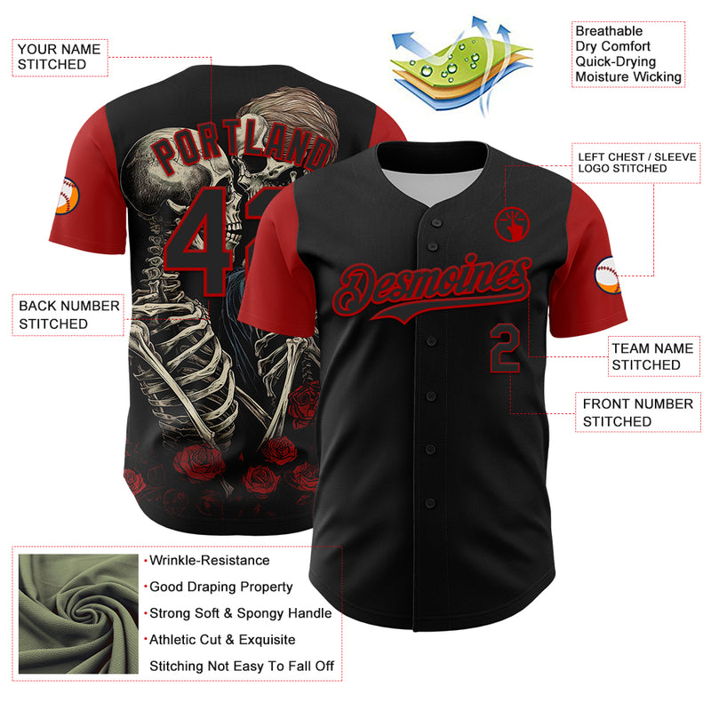 Custom Black Red 3D Pattern Design Rave Gothic Style Authentic Baseball Jersey