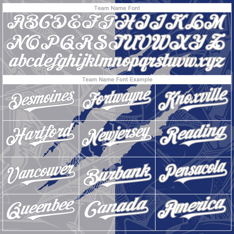 Custom Graffiti Pattern White Royal-Gray 3D Scratch Authentic Baseball Jersey