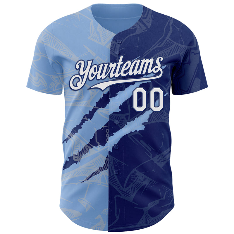 Custom Graffiti Pattern White Royal-Light Blue 3D Scratch Authentic Baseball Jersey