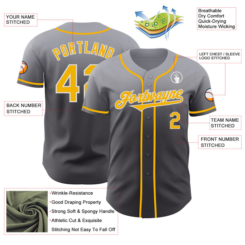 Custom Gray Gold Steel Gray-White Authentic Fade Fashion Baseball Jersey