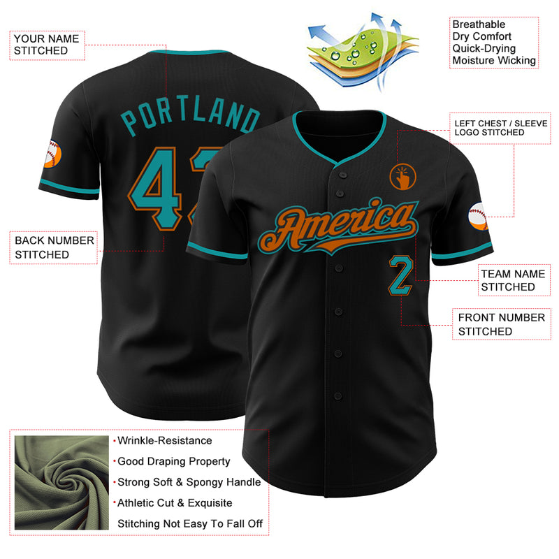 Custom Black Teal-Texas Orange Authentic Baseball Jersey