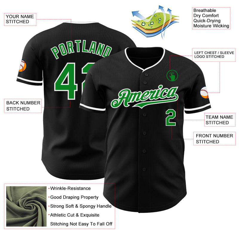 Custom Black Grass Green-White Authentic Baseball Jersey